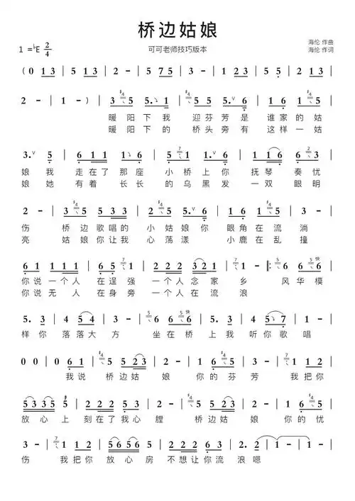 桥边姑娘智能简谱可可老师技巧版本