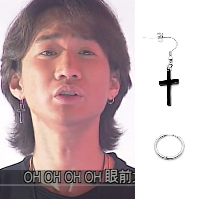 beyond乐队黄家驹同款十字架防过敏耳环钉耳坠耳圈环男女个性耳坠