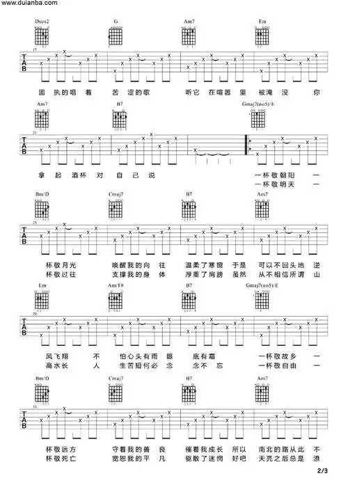 消愁吉他谱_毛不易_g调六线谱_声线光影图片谱_木木吉他网