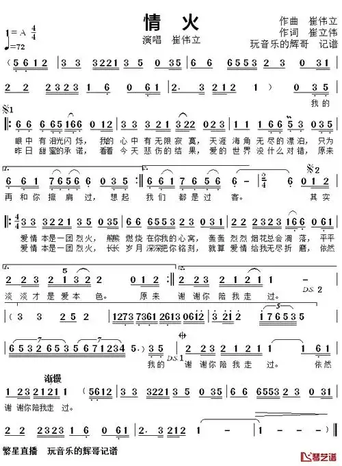 情火简谱(歌词)-崔伟立演唱-玩音乐的辉哥曲谱1