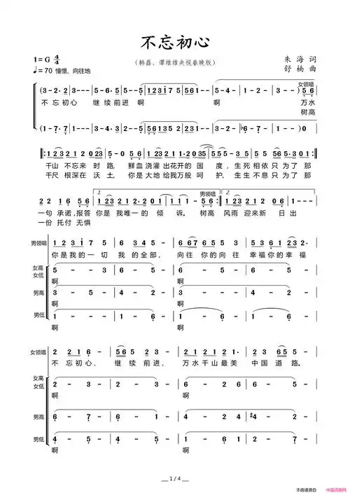 不忘初心简谱(歌词)_二声部合唱_谱友宋友三上传