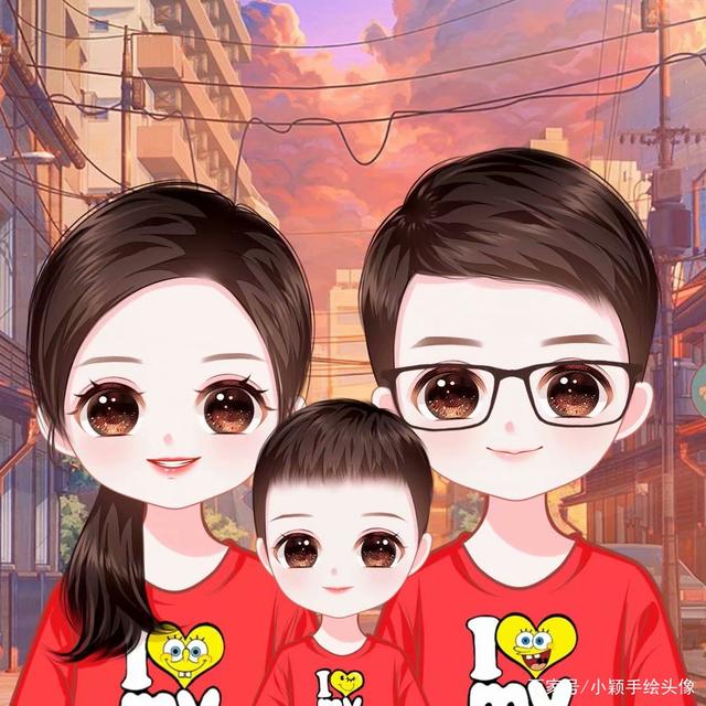 一家三口漫画头像,用手绘的方式记录温馨,甜蜜美好
