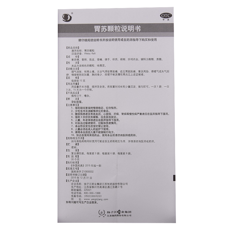扬子江胃苏颗粒15g*9袋/盒理气消胀和胃止痛胃脘之痛扬子江药业集团
