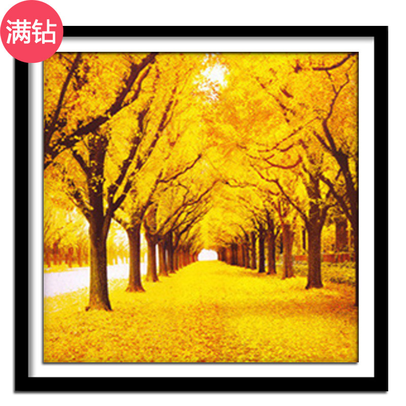 黄金大道钻石画黄金满地发财树客厅玄关竖版点贴钻十字绣装饰画 黄金
