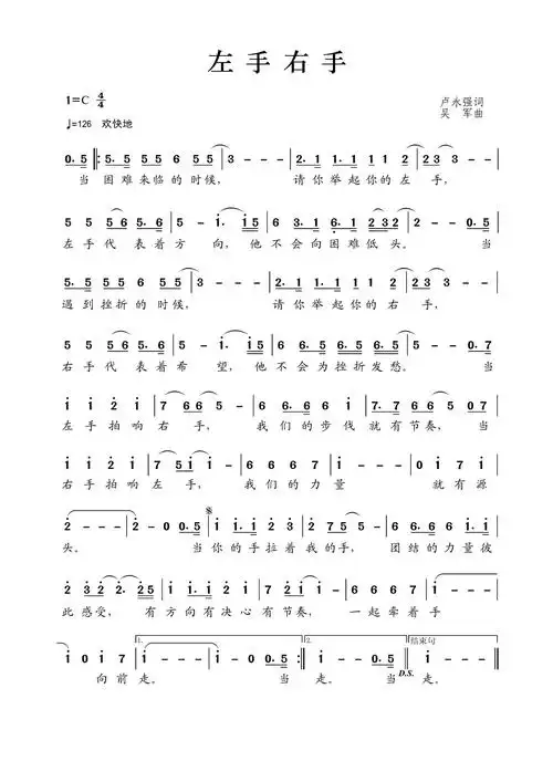 左手右手歌词简谱第1页