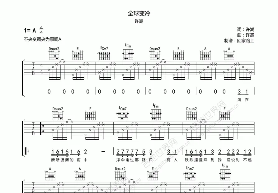 全球变冷吉他谱许嵩吉他弹唱六线谱
