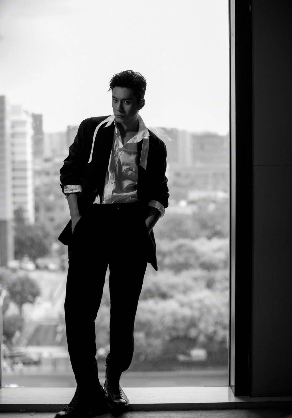 张艺兴白衬黑西服穿搭黑白手机壁纸