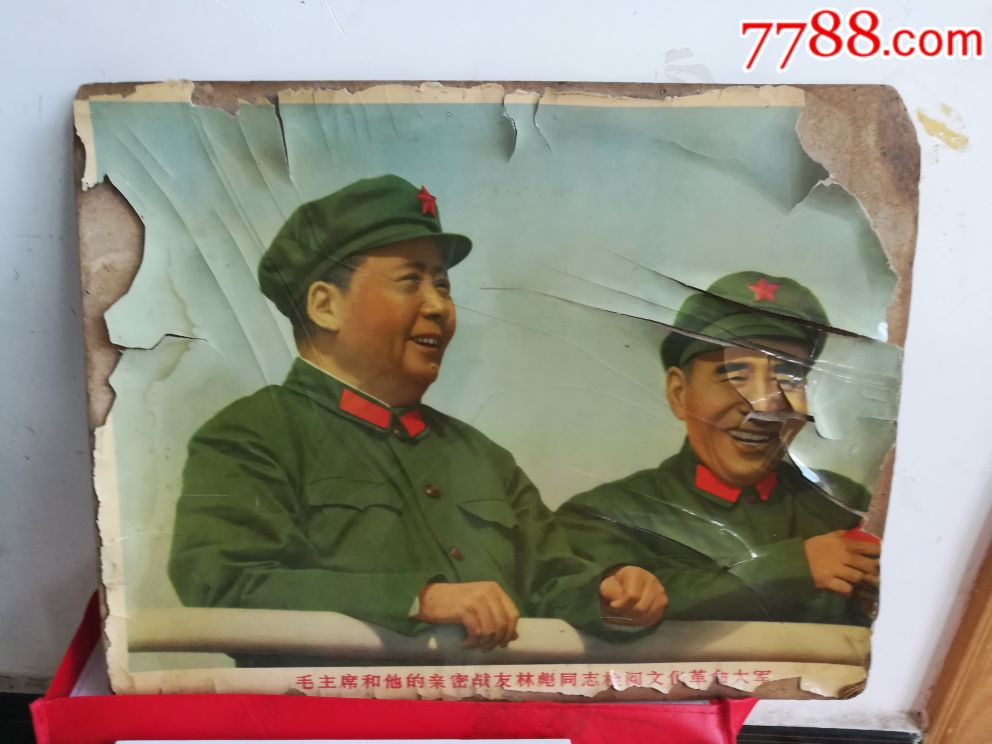 古董古玩收藏真品红色收藏毛林合影宣传画
