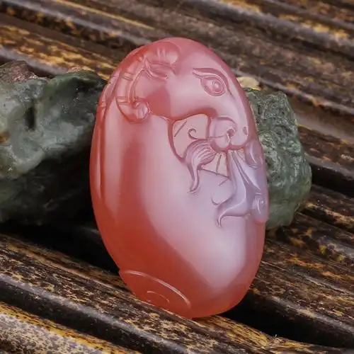玲珑玉艺-天然非洲南红玛瑙生肖羊吊坠 满肉满色苏工雕件 发洋财