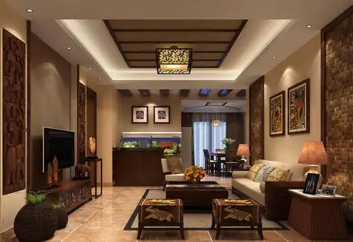 东南亚风格三居室客厅吊顶装修效果图欣赏#788435927