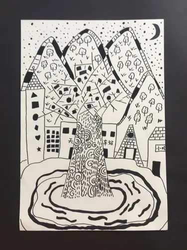 她在树上画了圆形,三角形,方形!