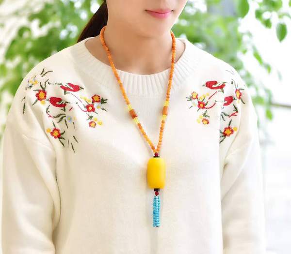 老蜜蜡桶珠毛衣链男女款流动纹搭配6mm链子绿
