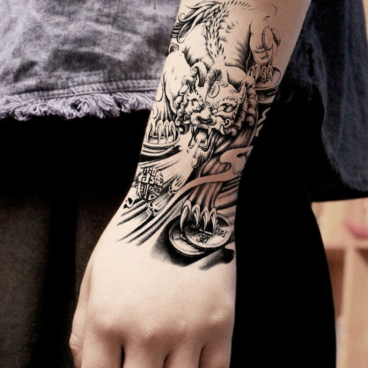 千色集麒麟貔貅穷奇纹身贴防水男花臂半臂手臂仿真刺青贴纸 一张