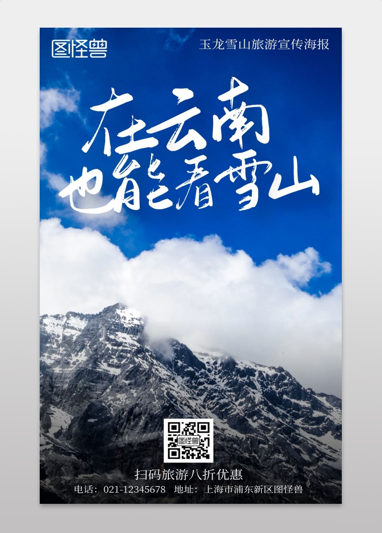 蓝色背景简约大气美丽玉龙雪山宣传海报