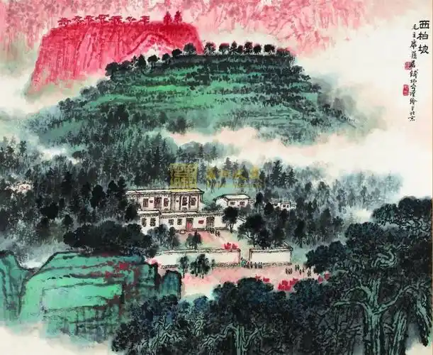 西柏坡国画图片