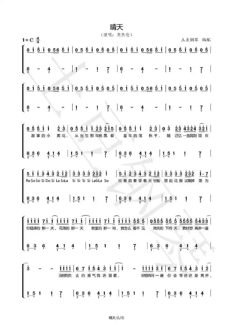 周杰伦 #晴天钢琴简谱 #音乐分享 《晴天》c调简易简谱版 - 抖音