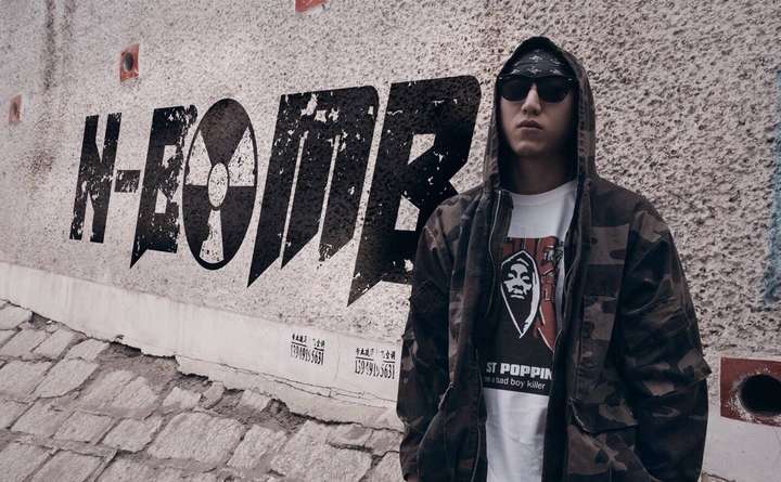 黄硕 n-bomb,属于国内硬核说唱中的佼佼者,因为他的装扮看上去很凶狠