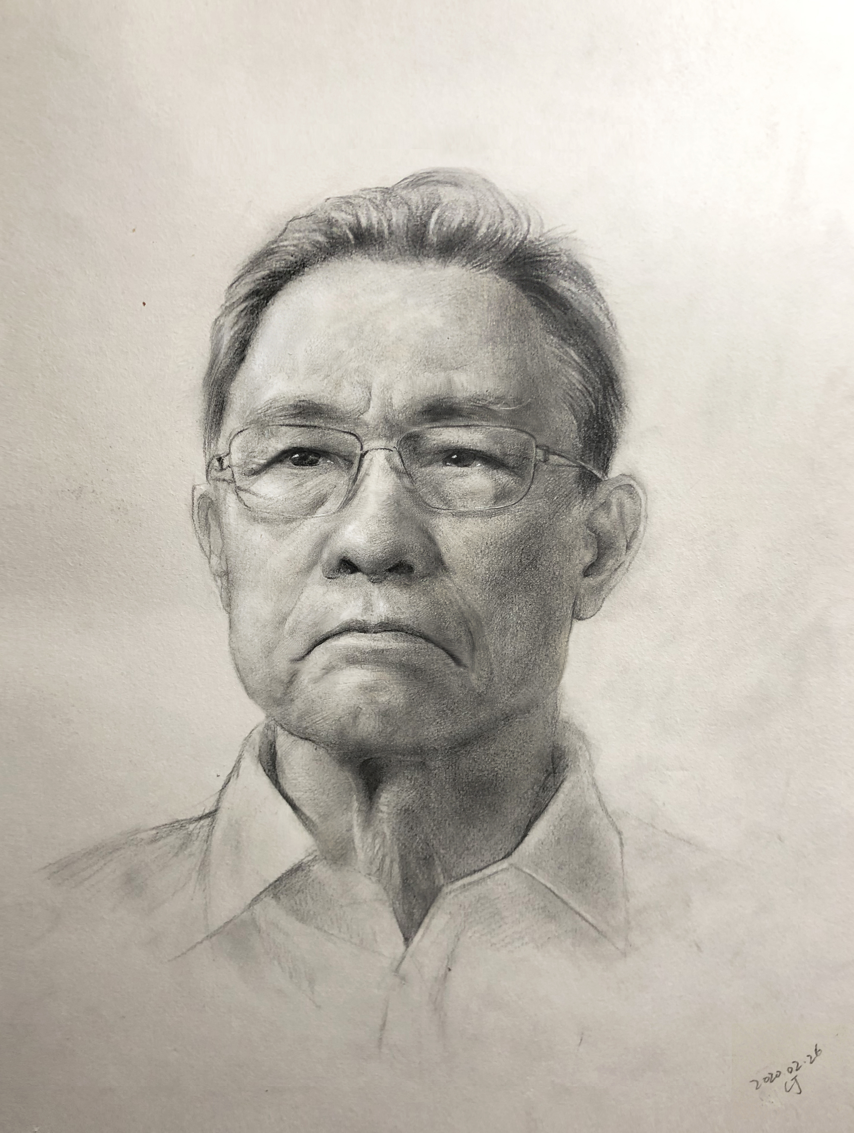 素描 《犹在当年征途中》 刘元敏绘行书 《"七一"感怀》 释文:风雨