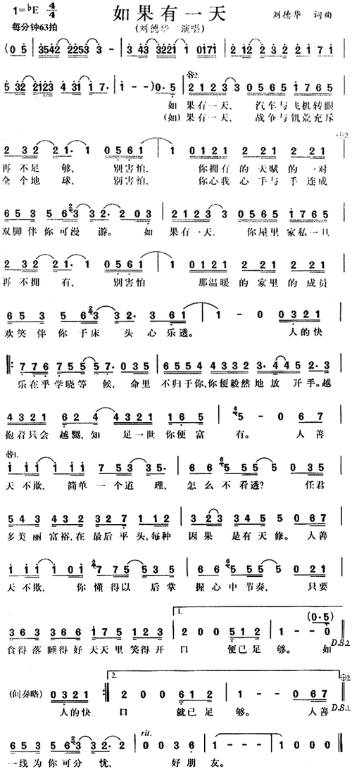 如果有一天简谱(歌词)-刘德华演唱-谱友电视迷上传1