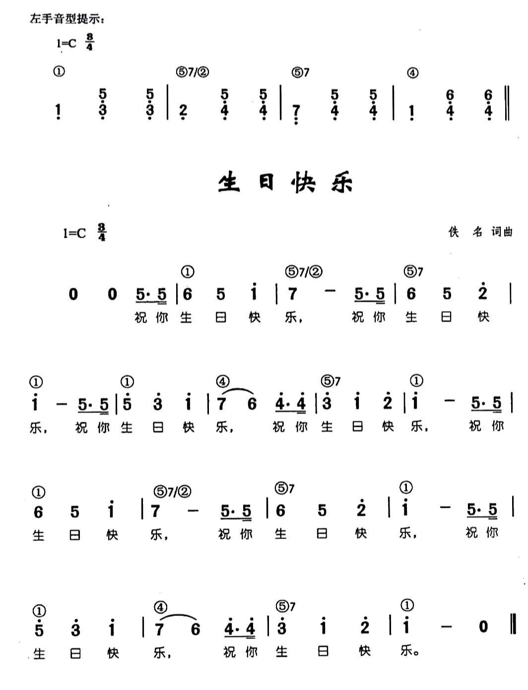 生日快乐简谱
