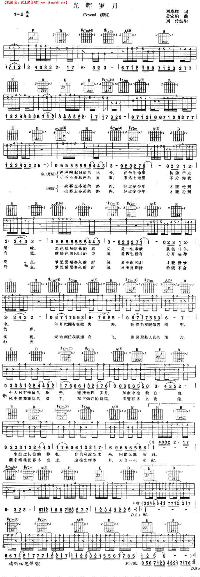 光辉岁月吉他谱_beyond_c调弹唱六线谱_生产队上传