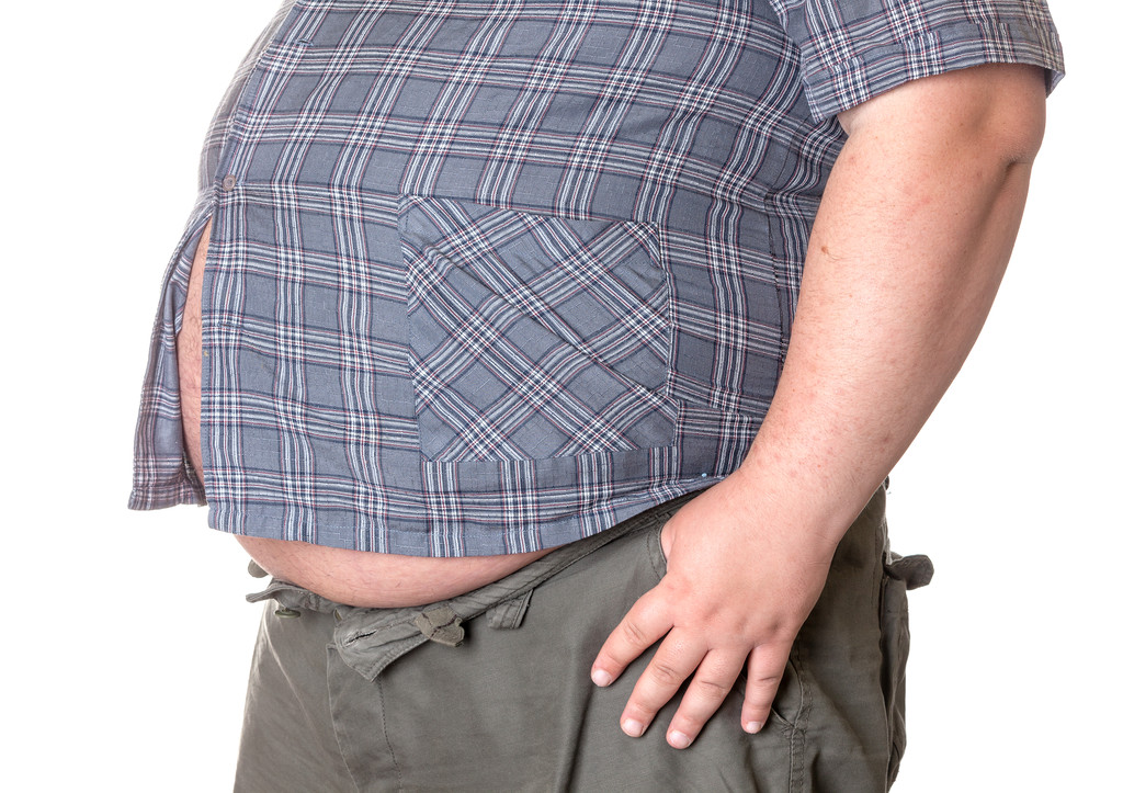 大肚皮的胖子,胖男人与一个大肚皮,特写身体的一部分