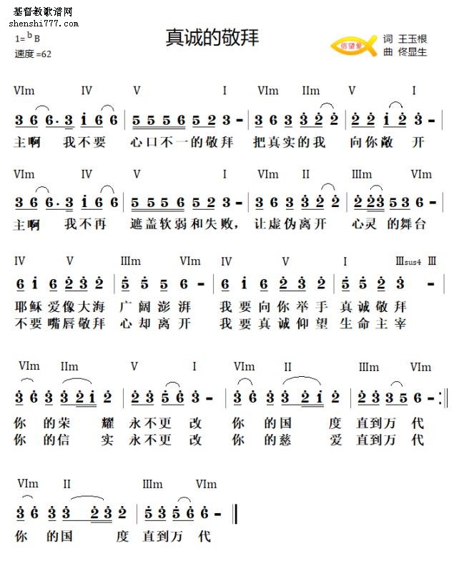 真诚的敬拜-原创歌谱_-弦外飞音谱网简谱网歌谱网 诗歌下载五线谱