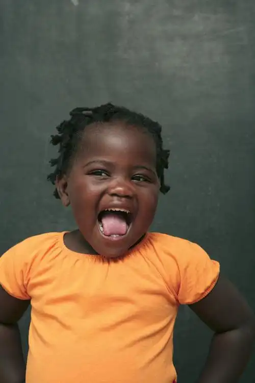 西方人,儿童,脸,头,脸颊,一个人,站,笑,大笑,竖图,室内,白天,正面