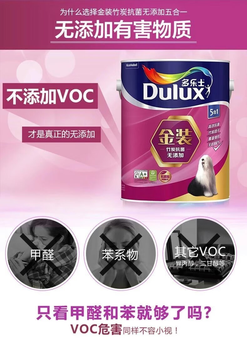 多乐士金装竹炭抗菌无添加五合一室内墙乳胶面漆白色可调色a8156