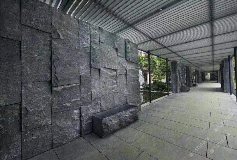 青石板材是一种天然石材,其表面呈现出自然纹理和色彩,给人一种古朴