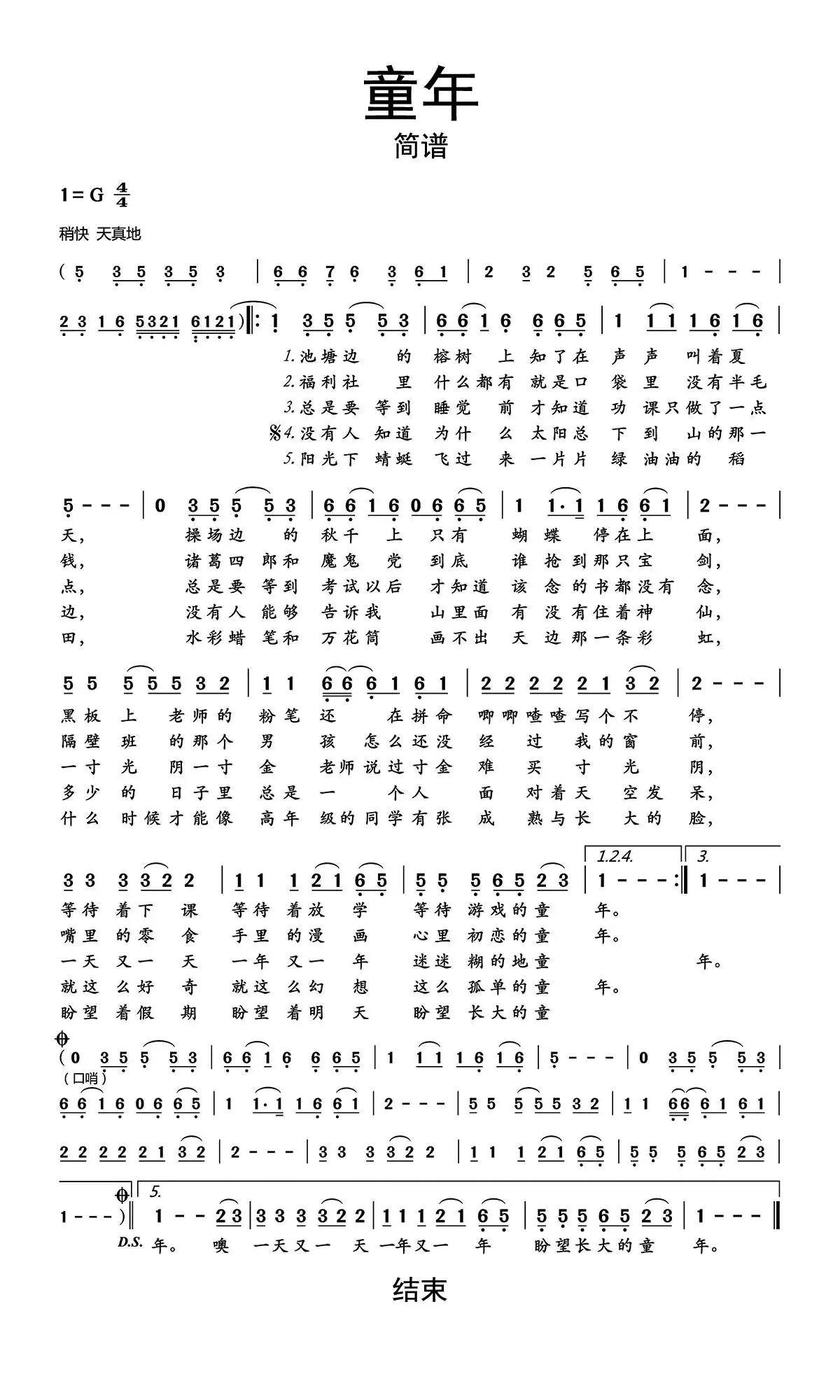 童年简谱乐谱