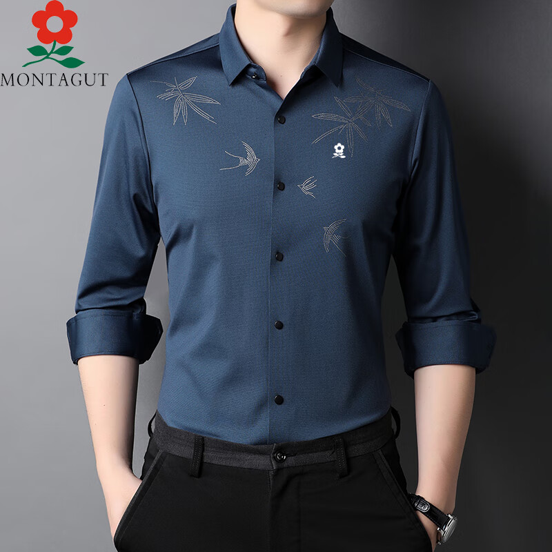 梦特娇(montagut)品牌男装梦特娇长袖t恤男翻领商务休闲大码纯色棉