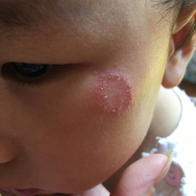 十岁儿童,左眼上眼皮一皮损,是牛皮癣么?