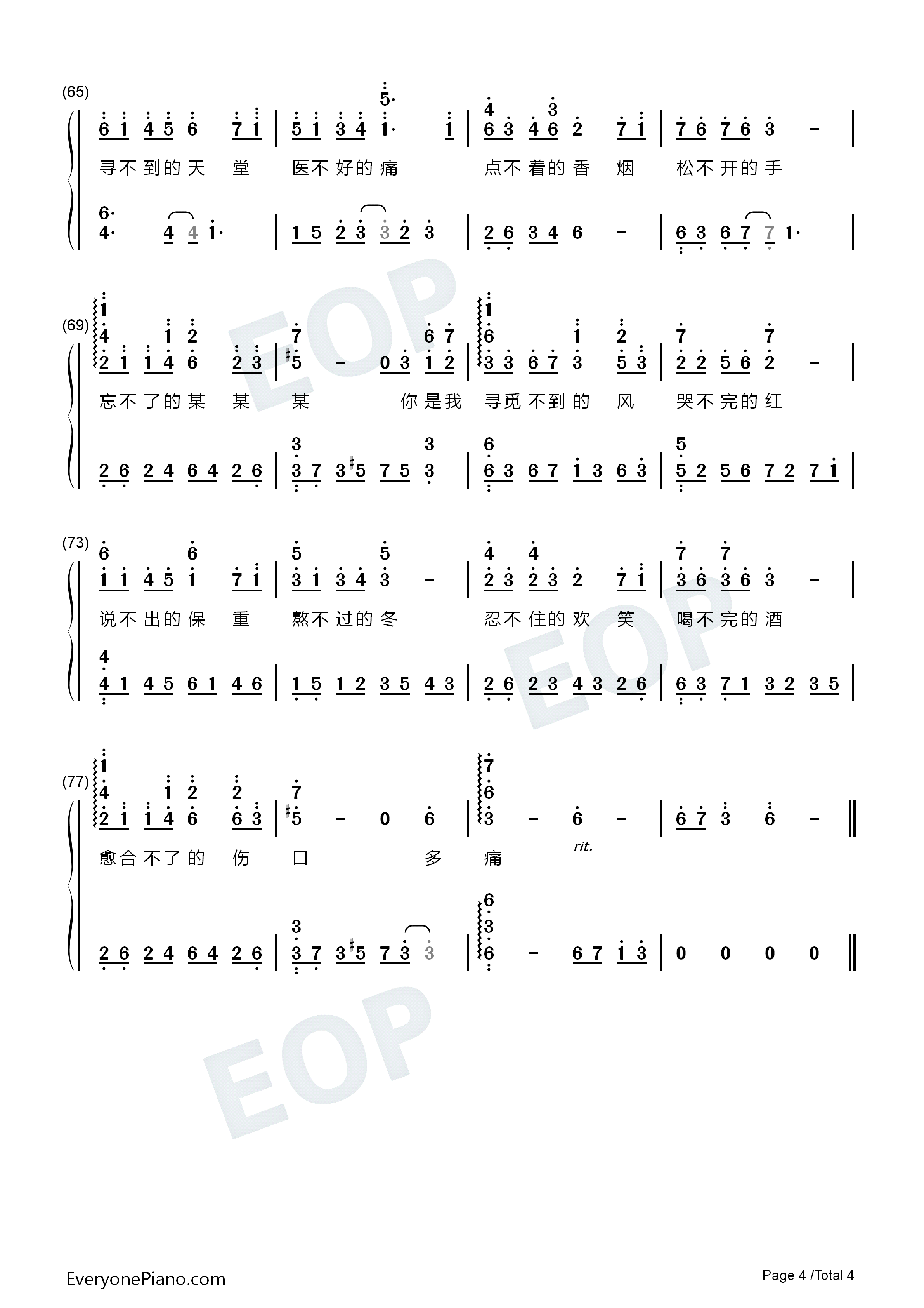 简谱李明聪cong醒不来的梦完整男版附歌词和弦