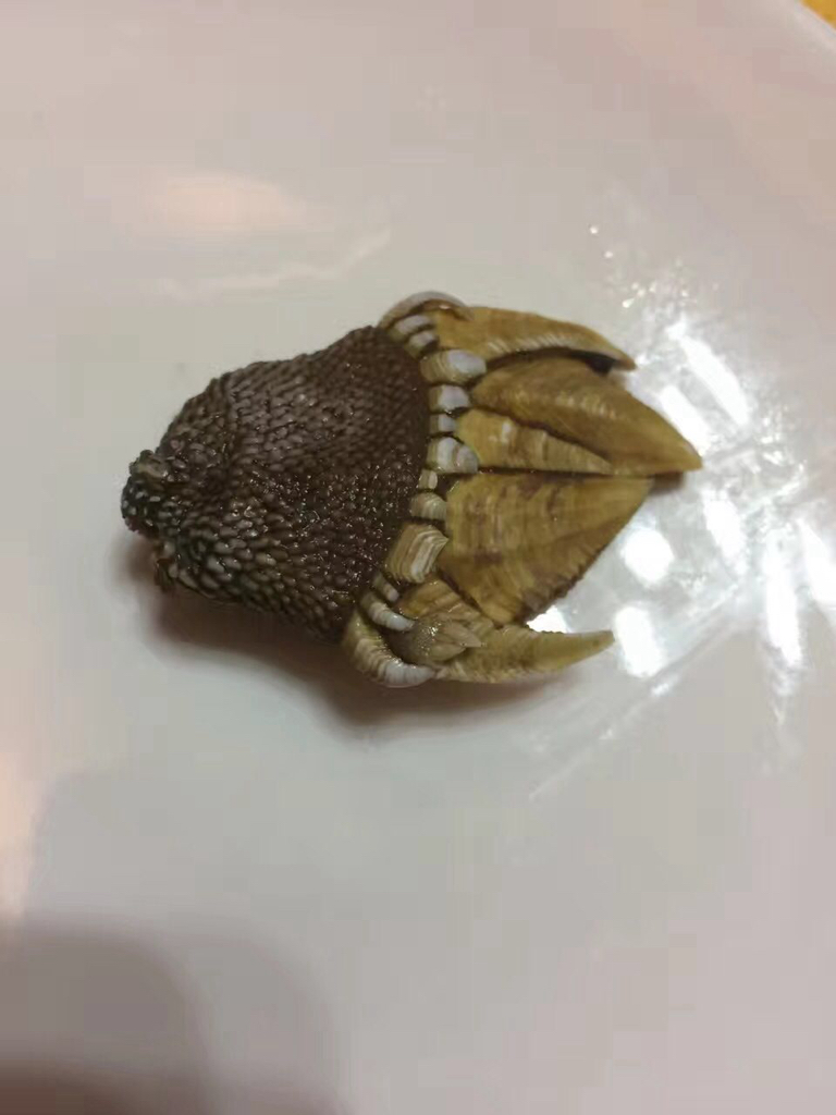 38 分钟前 最佳答案 龟足 俗名:佛手贝,石蜐,狗爪螺,龟脚,鸡冠贝