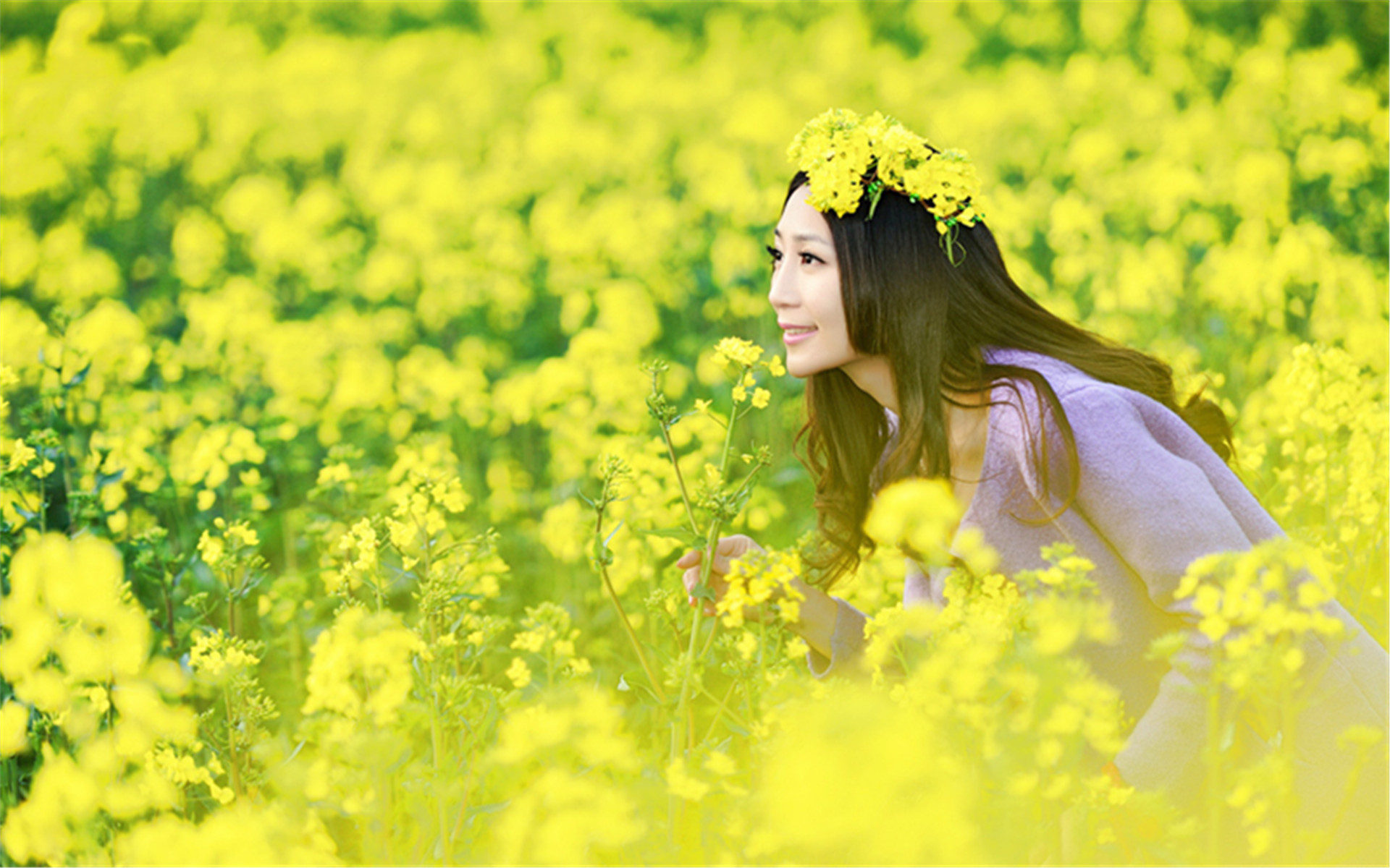 小清新靓丽美女油菜花田田园风光写真桌面壁纸(二)