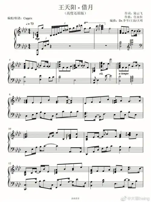 借月钢琴谱-c调-虫虫钢琴