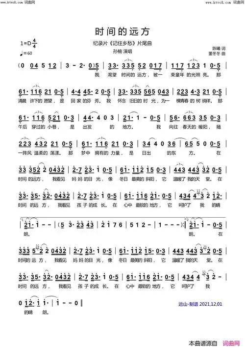 时间的远方(纪录片《记住乡愁》片尾曲)简谱-孙楠演唱-唱歌的树曲谱1