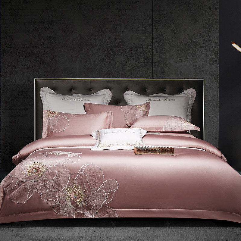 欧式纯棉四件套全棉婚庆结婚奢华60真丝刺绣被套床单1.8m床笠床品