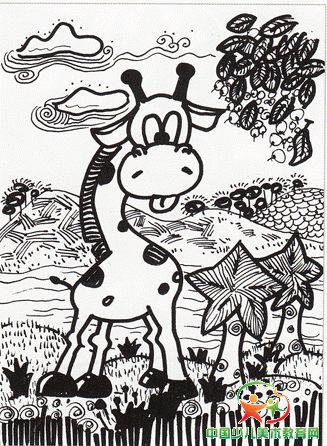5.丰富背景,细笔画出远景,如小山坡和树林等.把握好空间的透视关系.