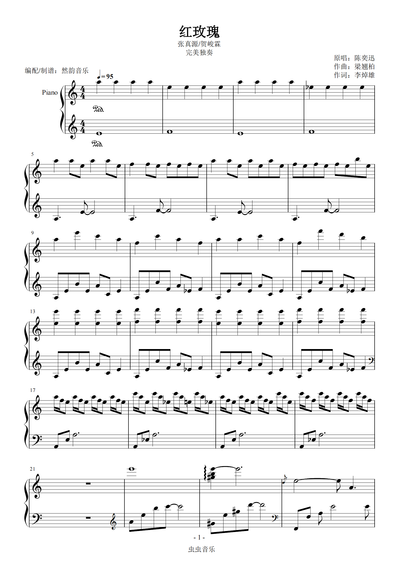 红玫瑰 - 钢琴谱 - 歌谱简谱大全