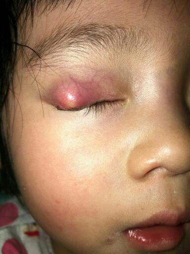 宝宝左眼下眼皮起了霰粒肿,已经一个多月了,有没有谁有经验,给点意见