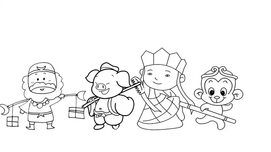 《西游记》唐僧师徒四人涂色画图片_人物涂色画简笔画