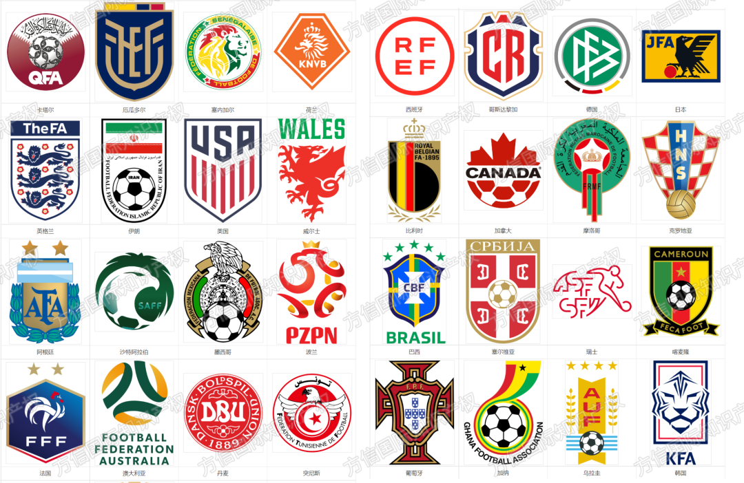 世界杯各个国家的队徽是受保护的,产品上印国家足球队队徽是需要授权