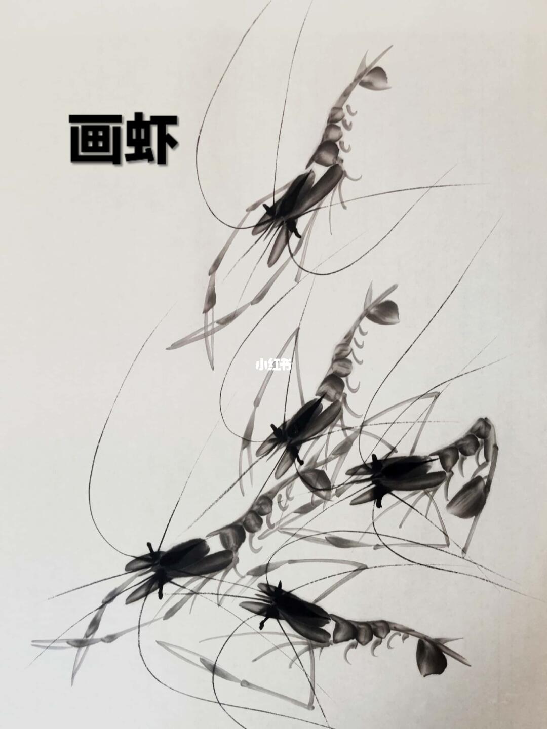 国画写意虾的画法步骤,以及虾的各种形态画法