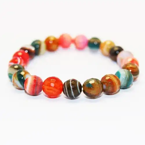 新疆阿勒善原矿五彩玛瑙珠手串,包邮.