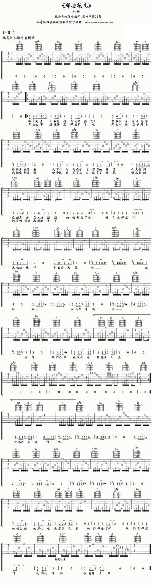 朴树《那些花儿》吉他谱_g调_降半音调弦_玩易吉他王飞编配版