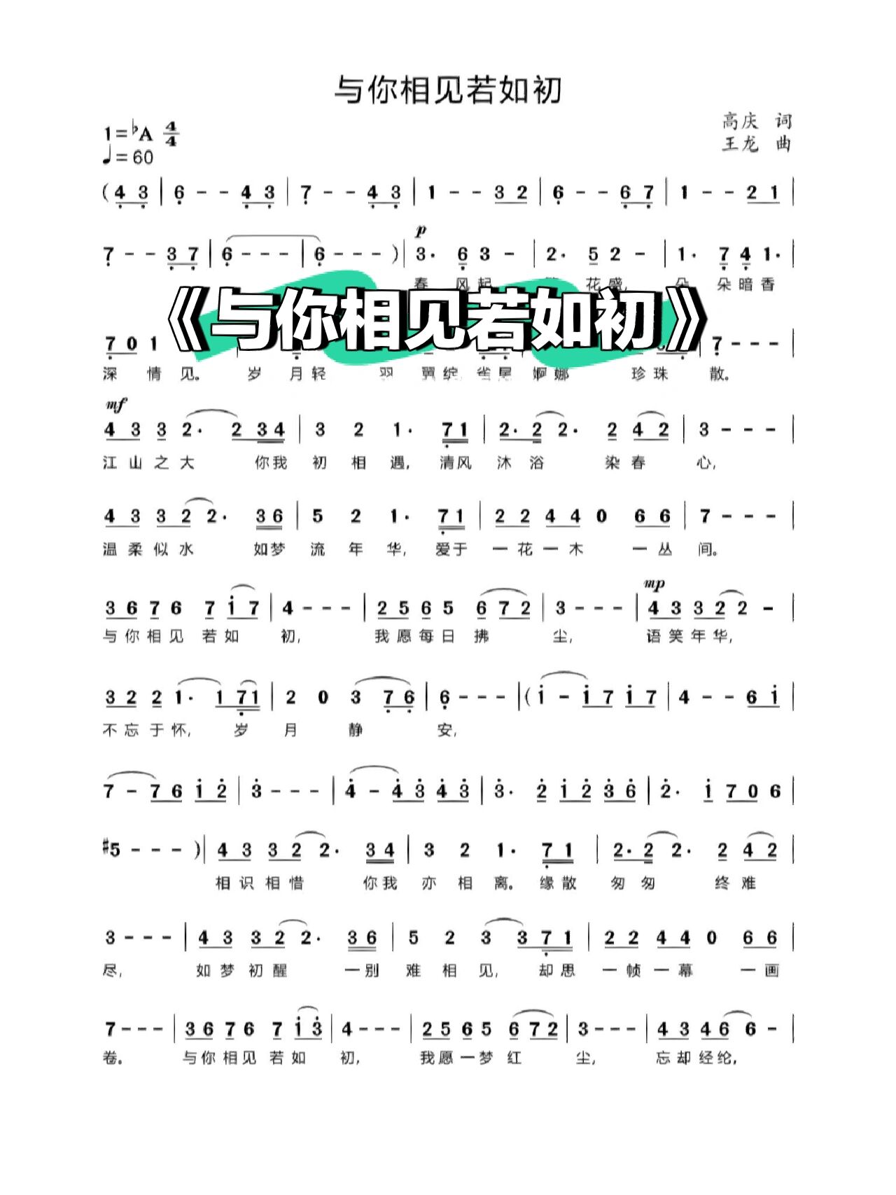《与你相见若如初》,正谱分享 词作者:高庆 曲作者:王龙 - 抖音