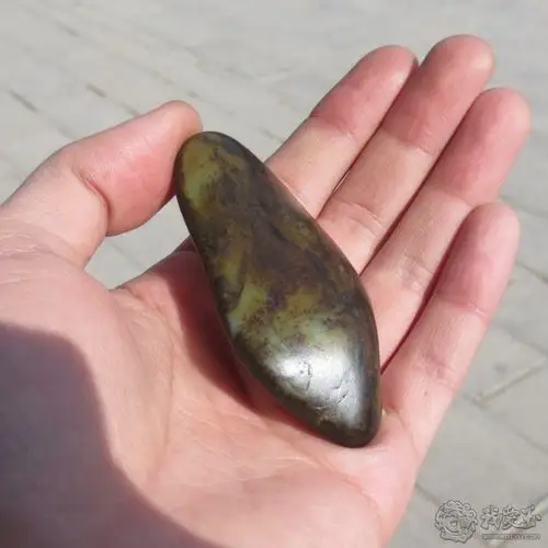 186g新疆和田沙枣青籽料原石正宗蓝调油润猫眼牌子手把件特色料