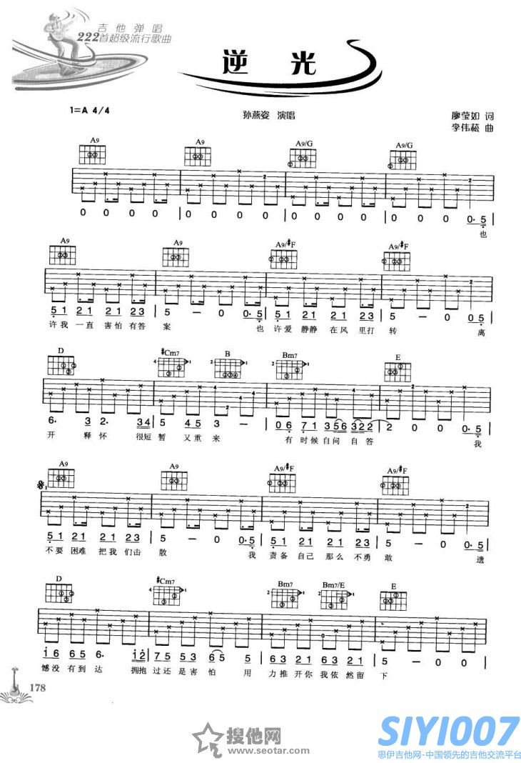 逆光吉他谱_孙燕姿_《逆光》g调弹唱谱_高清图片谱